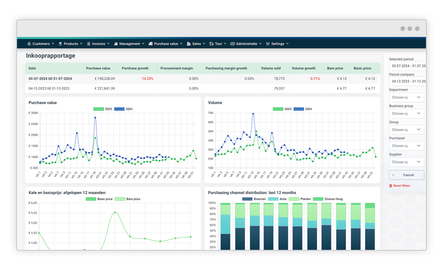 Vaak hebben kwekers wel beschikking over data, maar is het uitdagend om van al die data tot bruikbare inzichten te komen. Met de module Business Intelligence van ons Smart Growing platform, krijgen kwekers concrete inzichten in het resultaat van hun bedrijfsvoering en wat ze nog kunnen doen om dit resultaat te verbeteren.